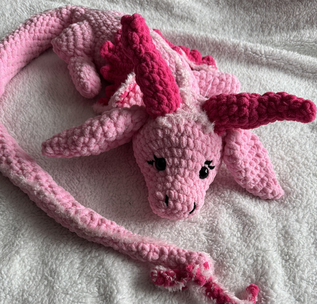 Hand crocheted by me, is this gorgeous mega, 4ft long sized dragon.