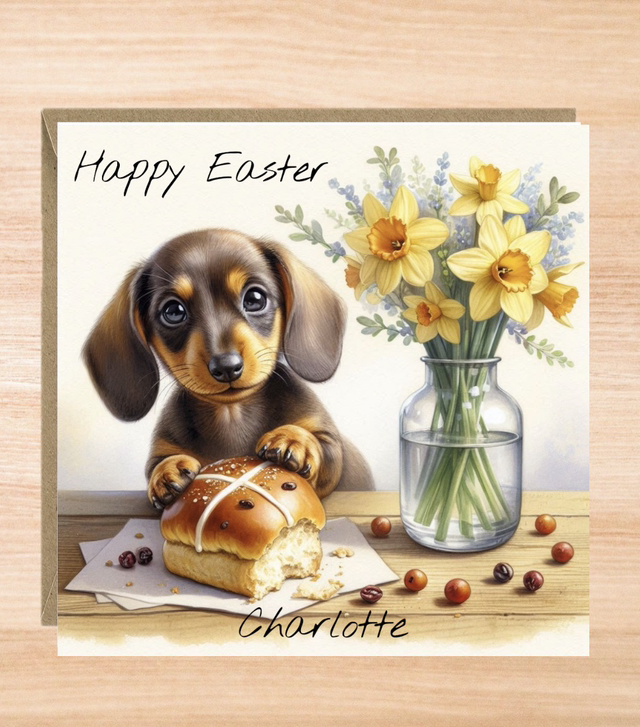 The card can have any name you would like on the front of the card, so it would read “Happy Easter (Your Chosen Name). Please write the name you would like on the card at checkout under message for the merchant.