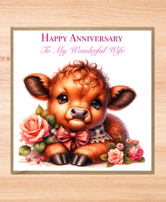 Personalised Highland Cow Wedding Anniversary Card